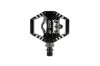 leichtes Combo-Pedal mit einseitigem Edelstahl Klick-System, SPD-kompatibel, anpassbare Federhärte, sicherer Halt durch 8 einstell- und austauschbare Pins, hochwertiges CNC Finish, gedichtetes Patronengleitlager und gedichtetes Industrielager, haltbare, CNC gefräste und ausgebohrte Cr-Mo Achse, Lieferumfang beinhaltet ein Paar Cleats