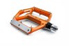 leichtes Flat-Pedal, CNC-veredelter Aluminiumkörper und CrMo Achse, angefaste Kanten für erhöhte Bodenfreiheit in Kurven, große Standfläche, extrem flache Bauweise, neun austauschbare Pins pro Seite, gedichtetes Patronengleitlager und zwei gedichtete Industrielager