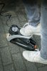 Toller Auf-Tritt: Die Fußpumpe AIRSTEP mit großem, gut ablesbarem Manometer vereint erstklassige Materialien und eine durchdachte Konstruktion. Für ein bequemes Aufpumpen sollte die AIRSTEP mittig am Fahrrad positioniert werden. Von hier aus lassen sich Vorder- sowie Hinterreifen dank des langen Spiralschlauchs mit dem MULTI VALVE-Kopf verbinden. Durch Betätigen des Aluminium-Trittbügels in aufrechter, rückenschonender Körperhaltung kann nun eine effektive Pumpleistung bis zu 7 bar erzielt werden, während Sattel und Lenker als Halt für die Hände dienen. Nach dem Pumpen wird der Bügel wieder heruntergeklappt und per Schalter arretiert. Der elastische Schlauch wickelt sich automatisch wieder in die Ausgangsposition zurück. Anschließend lässt sich die kompakte Pumpe mit der Wandhalterung platzsparend verstauen.