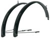 Eine echte Glanzleistung! Das SKS Schutzblech-Set BLUEMELS BASIC integriert sich nicht nur perfekt am Fahrrad, sondern schützt zuverlässig vor Dreck und Spritzwasser. Dank der flexiblen Sandwichkonstruktion, in der hochfeine Aluminiumstreifen in einer Kunststoff-Ummantelung eingebettet werden, sind die Radschützer extrem robust, biegesteif und korrosionsgeschützt. Mit seiner glänzend schwarzen Oberfläche und den schwarzen Befestigungskomponenten lässt das BLUEMELS BASIC auch optisch keine Wünsche offen. Das ESC-Sicherheitssystem sorgt für ein Entkoppeln der Streben, wenn Zweige zwischen die Speichen gelangen, sodass das Rad nicht blockiert. Die V-Streben mit Festbrücken garantieren eine individuelle Anpassung, die Tretlager-Ausschnitte machen eine Montage auch bei engem Bauraum möglich. Inklusive Zubehör und Streben.