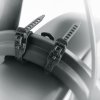 Das INFINITY UNIVERSAL MUDGUARD FRONT mit schwarz mattierter Oberfläche ist das Gegenstück zum Gepäckträger-Schutzblech INFINITY UNIVERSAL MUDGUARD REAR. Es lässt sich im Handumdrehen an der Gabelbrücke über einen Winkel verschrauben oder mit Softbindern befestigen. Die Unterlaufstrebe wird mit robusten Klettgurten an der Gabel montiert. Dank der flexiblen Sandwichkonstruktion aus Aluminium und Kunststoff ist das Vorderrad Schutzblech extrem biegesteif und korrosionsgeschützt. Das ESC-Sicherheitssystem sorgt für ein Entkoppeln der Strebe, wenn Zweige zwischen die Speichen gelangen. Erhältlich in zwei Profilbreiten von 56 bzw. 75 Millimetern.